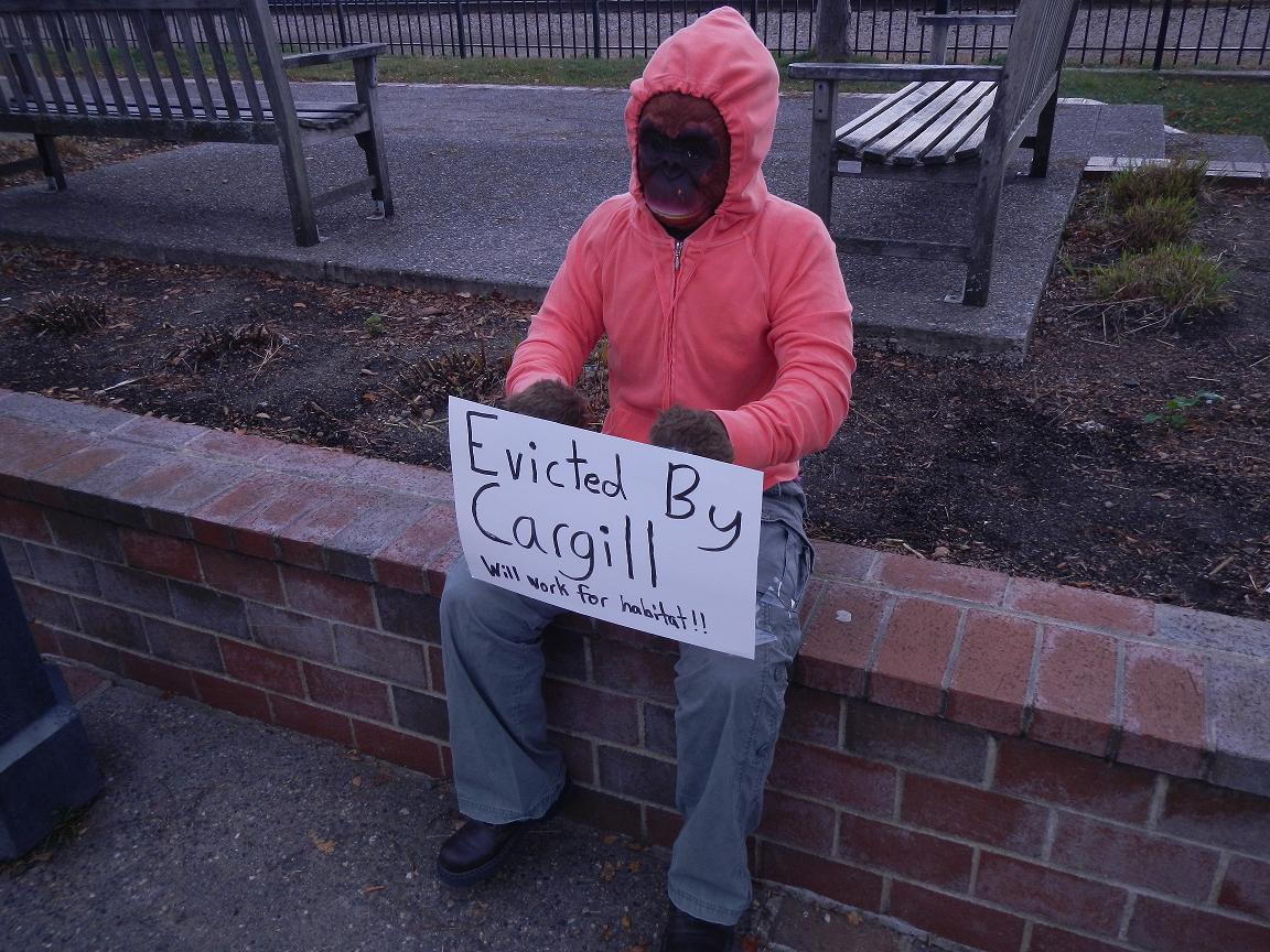 WHY is this an ARTFORSOCIALACTION movement? THIS IS WHY: our Wayzata Orangutan is one of many 3-d sculptures crafted by activists to bring attention to a very serious problem in WAYZATA -THE ACTIONS OF CARGILL. — The power of ART and The power of NON-VIOLENCE—